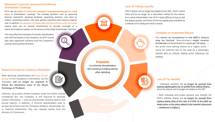 - Shareholders may face trading illiquidity, as KEX shares will no longer be tradable on the SET, which serves as the secondary market.