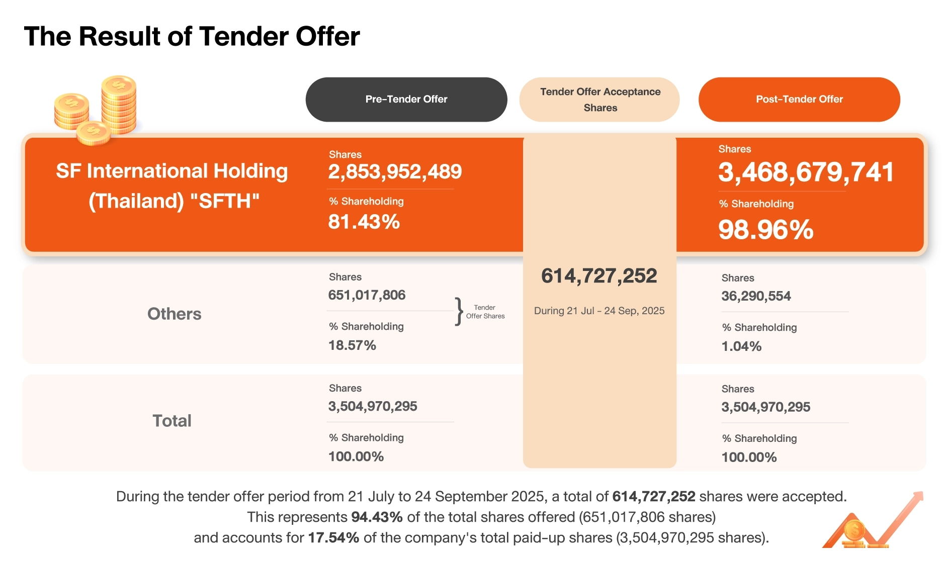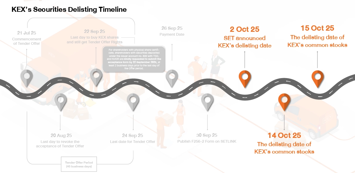 The tender offer period for all remaining KEX shares commence during Monday 21 July 2025 to Wednesday 24 September 2025 (Totaling 45 business days) from 9:00 a.m. to 4:00 p.m.